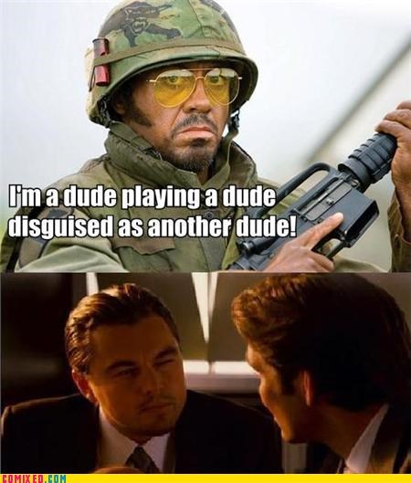 Kirk Lazarus in Tropic Thunder- You're the dude playing the dude, disguised as another dude.